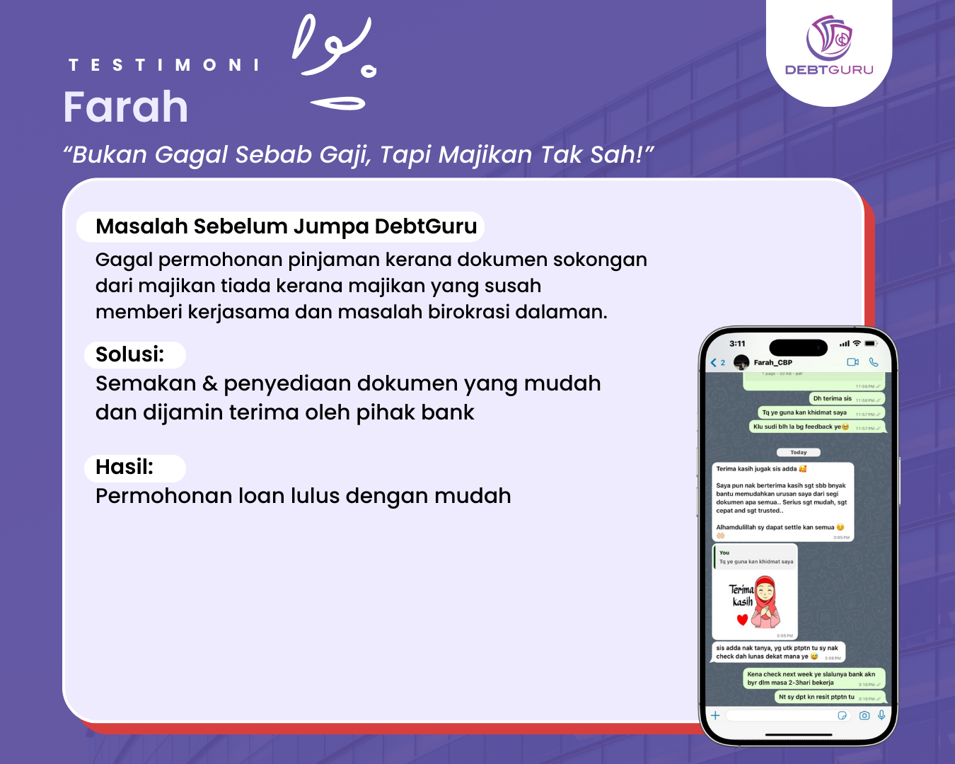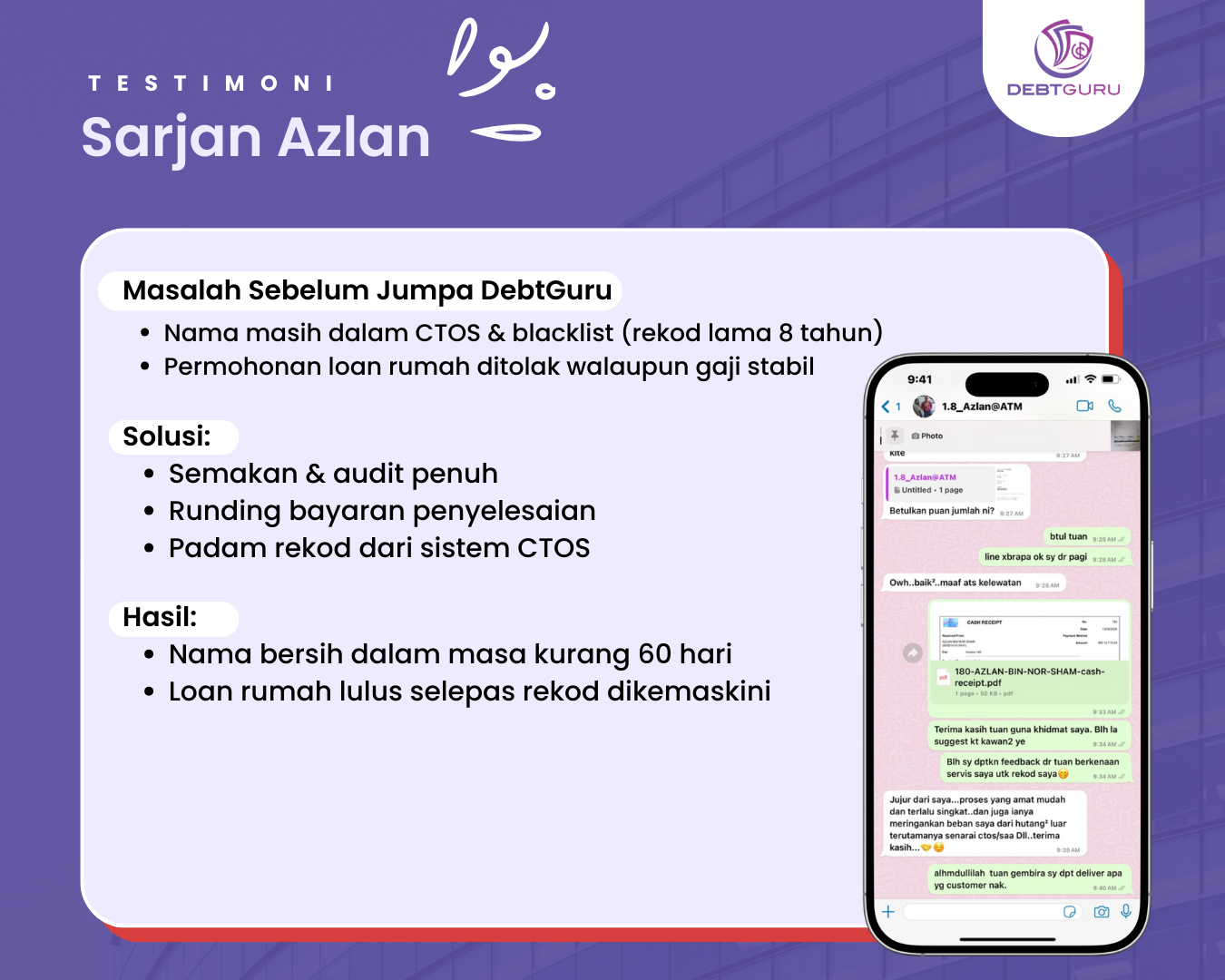 Ya, DebtGuru adalah agensi berdaftar yang hanya gunakan dokumen sah & proses bank yang betul.