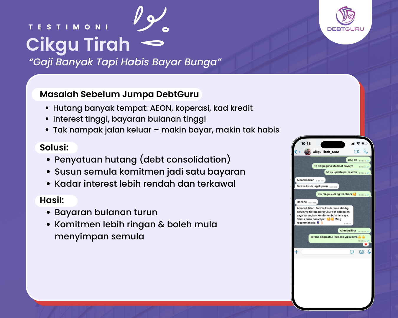 Bank bukan hanya tengok gaji sahaja. Mereka lebih fokus kepada struktur komitmen anda. Kami bantu dengan: