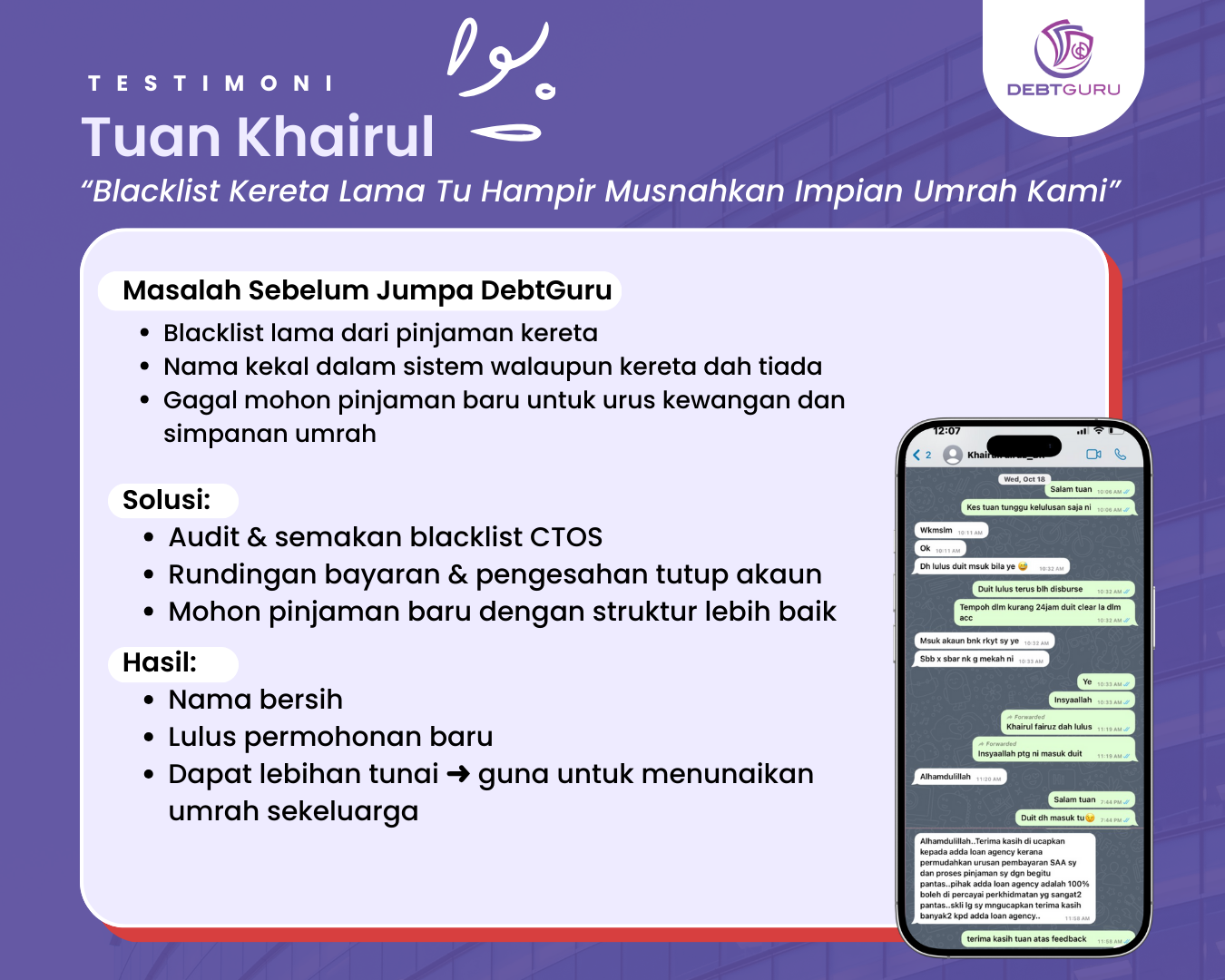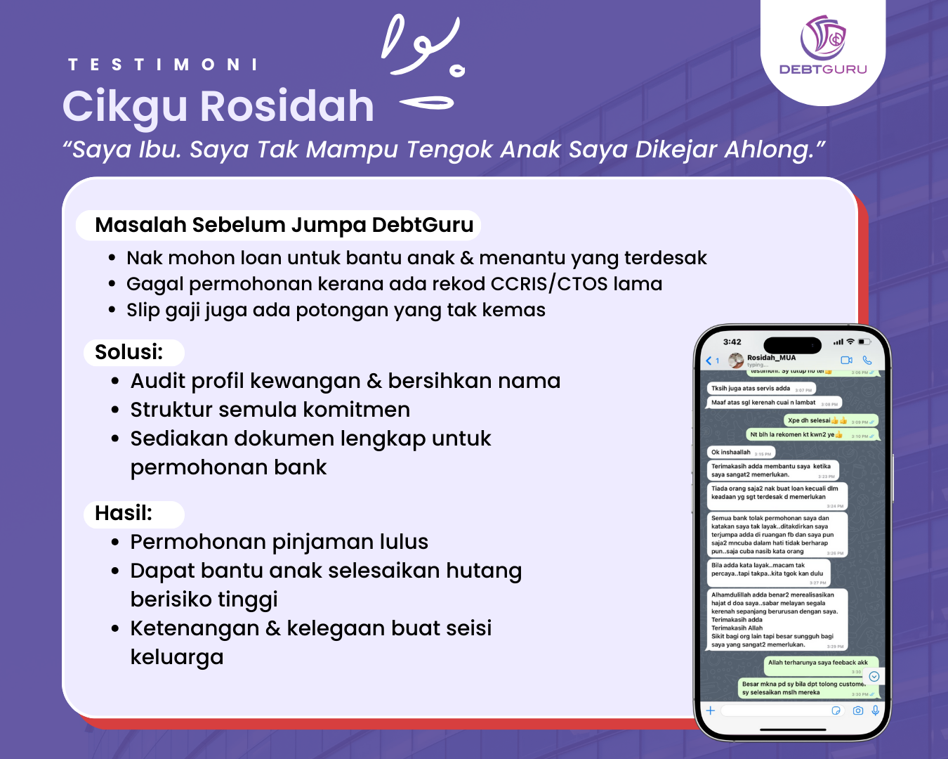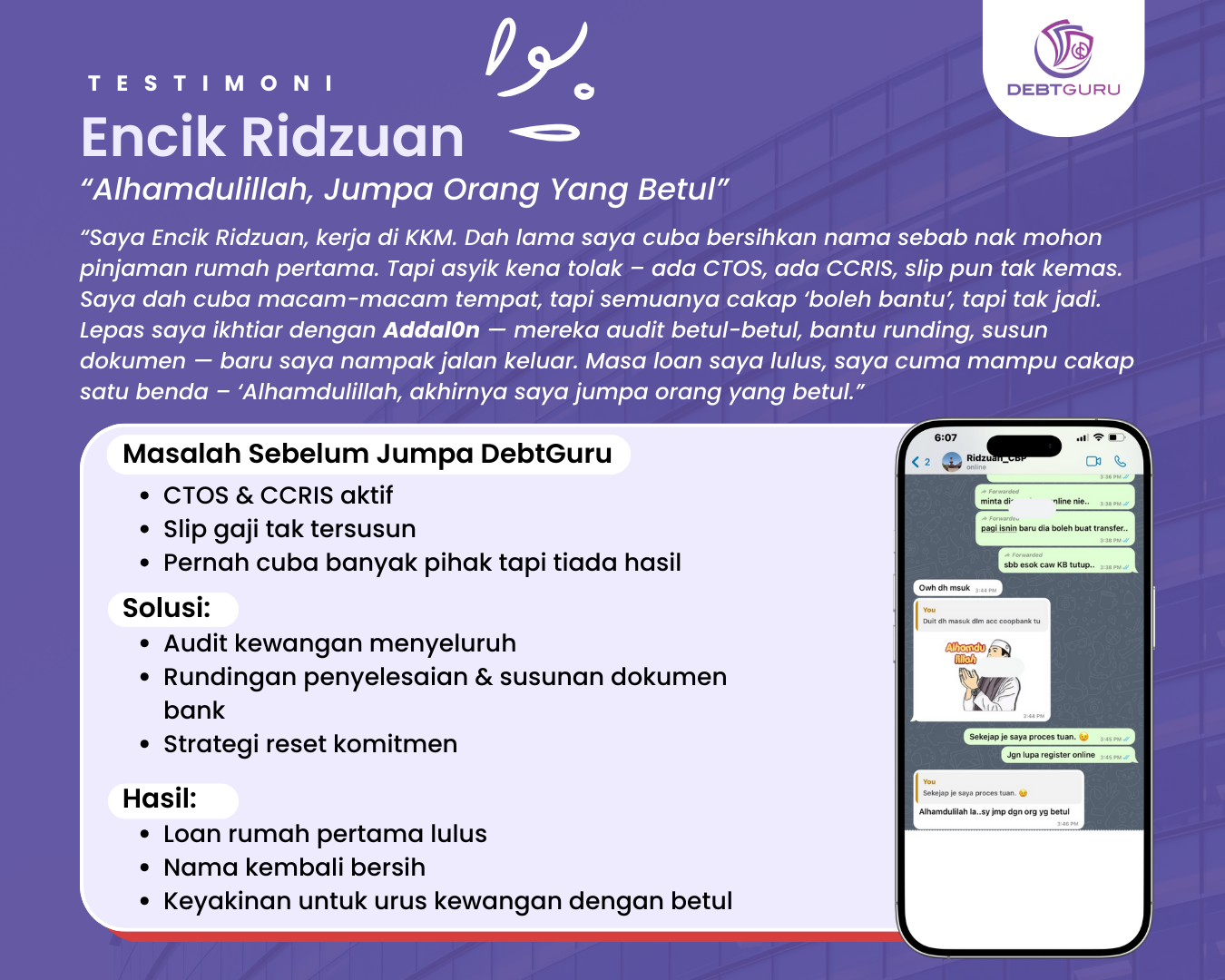 ✅ DebtGuru akan bantu semak, audit, dan susun semula profil anda supaya permohonan bank ada peluang lulus.